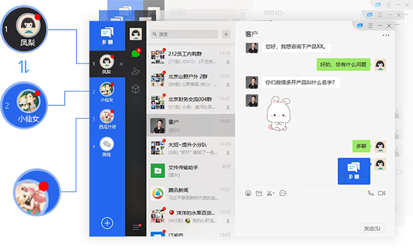 5、多开的操作与上述一致,不同微信账号可通过点击左上方切换